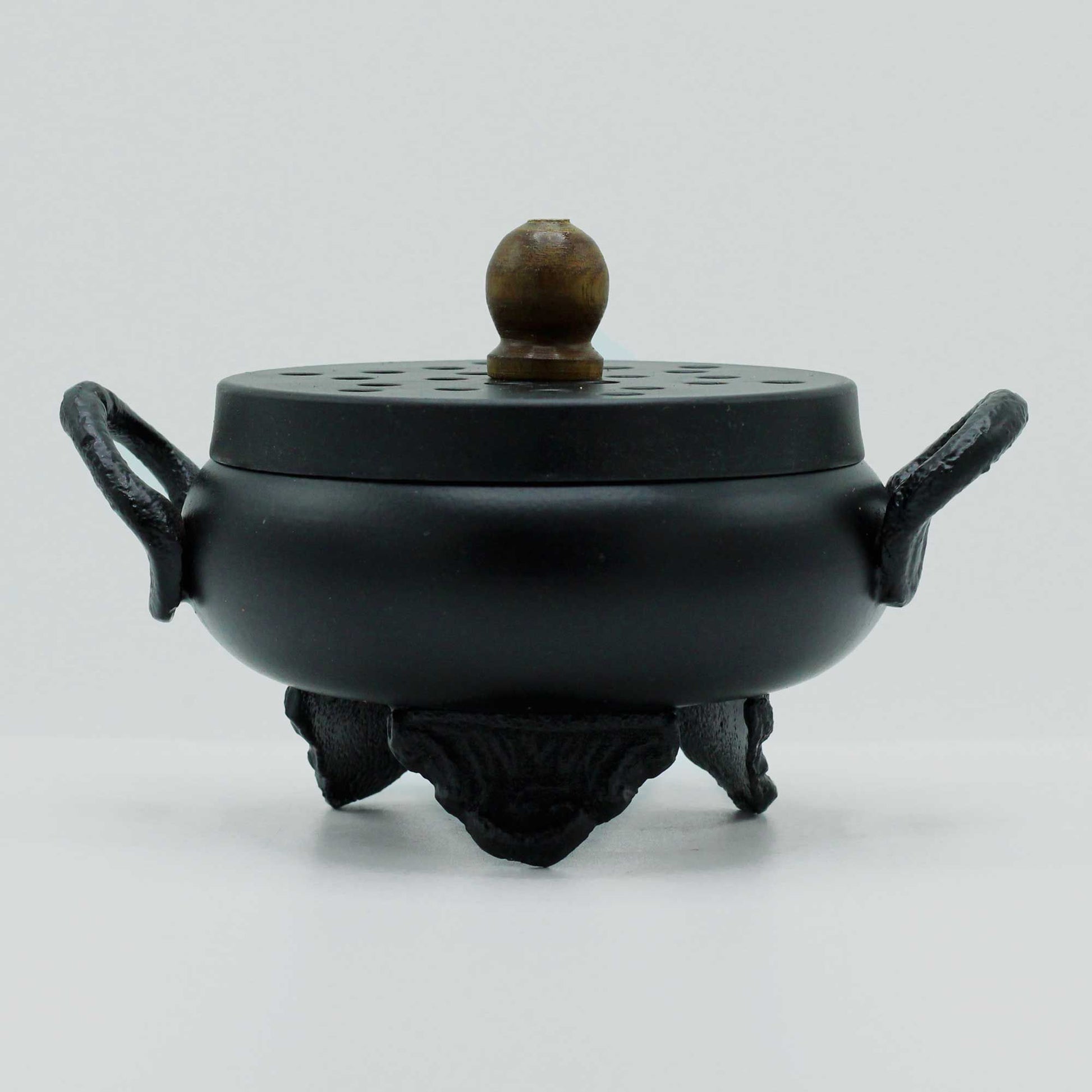 Gemaakt van duurzaam gietijzer, houdt het de warmte uitstekend vast en is het bestand tegen frequent gebruik. Ideaal voor het branden van wierook, harsen of losse kruiden, waardoor het een veelzijdig hulpmiddel is voor spirituele praktijken of het creëren van een sfeervolle omgeving. De gladde binnenkant zorgt bovendien voor makkelijk onderhoud en schoonmaak.